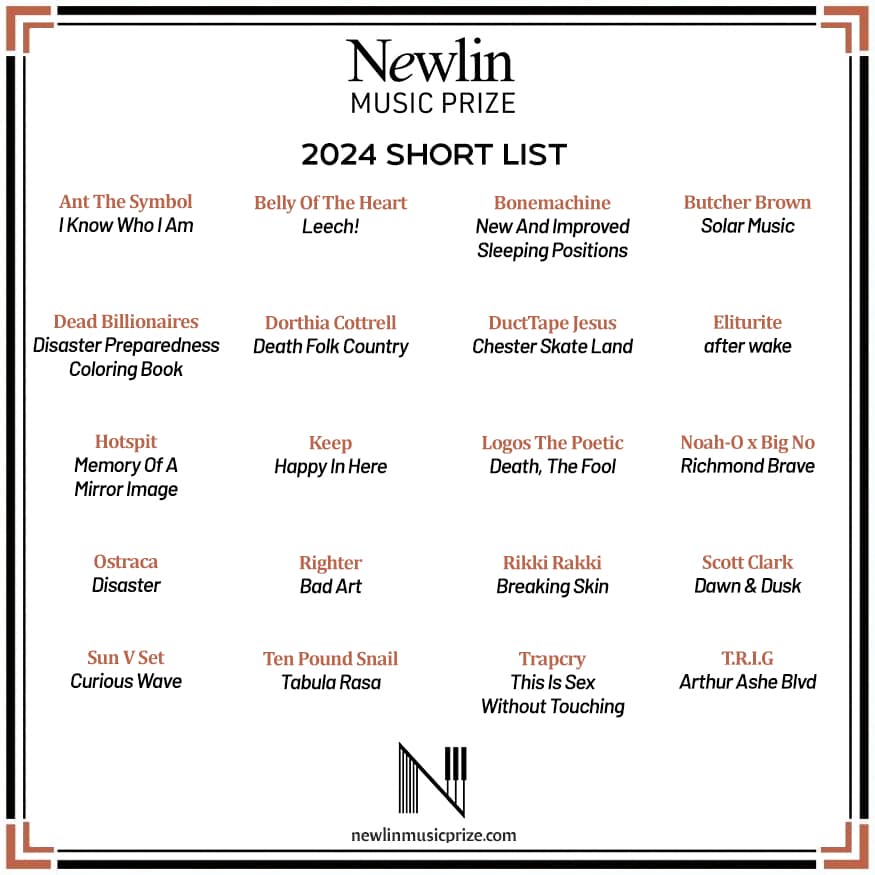 Modeled after similar awards such as Canada’s Polaris Music Prize and the United Kingdom’s Mercury Prize, the goal of the Newlin Music Prize is to raise awareness of the diverse music scene in Richmond, Virginia and to encourage more great recordings in the future. Previous award winners are Deau Eyes in 2023 for the album Legacies and McKinley Dixon in 2022 for the album For My Mama And Anyone Who Look Like Her.